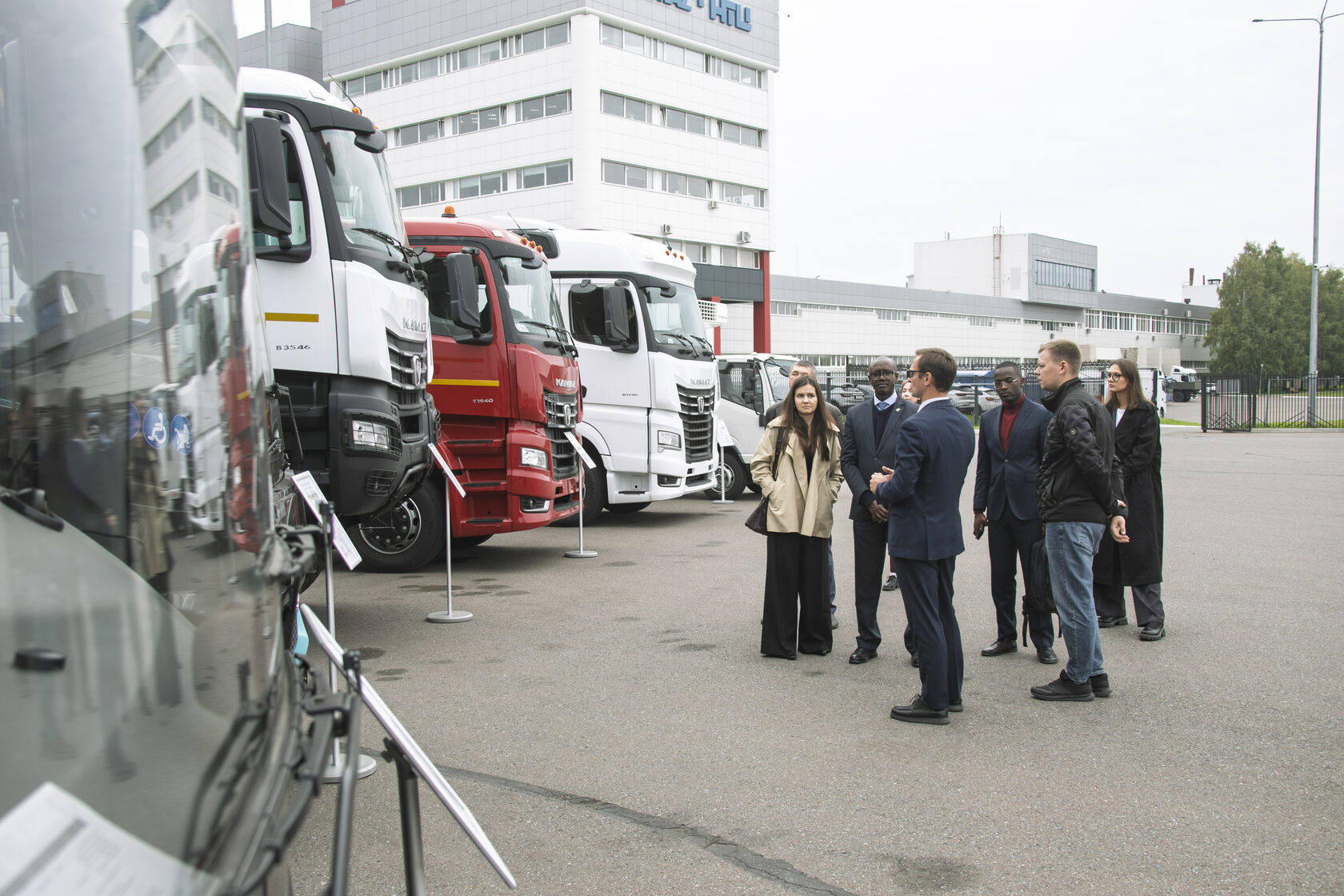 На площадке Научно-технического центра была организована выставка автотехники, демонстрирующая возможности компании в производстве грузовой и пассажирской техники. Гостям представили широкий ряд новейших высокотехнологичных автомобилей поколения К5, автомобиль Компас, карьерные самосвалы семейства Атлант и другую инновационную автотехнику. Плавность хода и комфортабельность седельных тягачей поколения К5 Джозеф Нзабамвита и консультант по информационно-коммуникационным технологиям Фабрис Ишимве оценили лично, проехав на автомобилях КАМАЗ-54901 и КАМАЗ-54902.